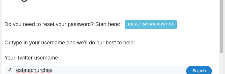 I have recently been working with a UK charity called National Estate Churches Network (NECN). I’ve been helping them rebuild their digital presence after a string of issues, both technical and otherwise, caused them to lose their domain name, website and email addresses. As a knock-on effect they had also lost access to their twitter … Continue reading Twitter account access when you lost access to your email